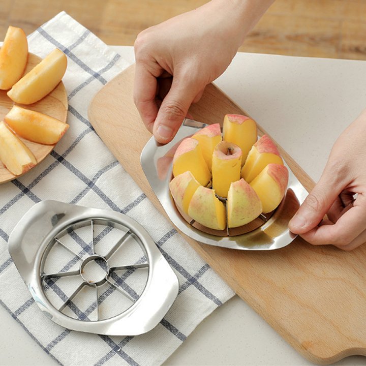 Dụng cụ này ra đời cho những mẹ nào vừa muốn bổ hoa quả đều nhau tăm tắp, vừa muốn không muốn mất nhiều thời gian. Để cắt được hoa quả, sản phẩm cần thiết kế vô cùng chắc chắn, lưỡi dao mảnh, sắc được gắn chắc chắn vào giá cầm tay giúp cho thao tác chuẩn và nhanh chóng. Bạn có thể bổ lê, táo, cam, ổi, dưa lê… và nhiều loại quả thông dụng khác mà không còn tốn quá nhiều công. Đĩa hoa quả vừa nhanh vừa đẹp đã trong tầm tay!