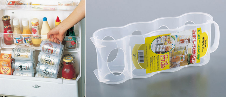 Bạn hay xếp những chai lọ lỉnh kỉnh đầy cả tủ khiến việc tìm và lấy dụng cụ trở nên khó khăn hoặc bất tiện. Người Nhật đã nghĩ ra một thiết kế thông minh là chiếc giá để các loại chai lọ, lon bia có tay cầm. Giá được thiết kế ôm theo thân hình từng chiếc lon/chai giúp cho lon/chai đựng bên trong rất chắc chắn kể cả khi bạn đặt ngang hay dọc.