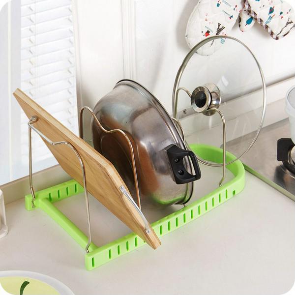 Khi nấu nướng các bạn thường đặt vung nồi lên đâu? Lên bàn bếp nấu hay gác tạm lên các vật dụng khác. Để giúp các bà nội trợ có nơi để “gác tạm” vung nồi lên trong khi nấu, gác vung cho khô sau khi rửa, xếp vung nồi và nồi gọn gàng sau khi sử dụng. Sinh ra để gác vung nồi nên chiếc giá có các đường cong giữ cho vung nồi chắc chắn, không chạm xuống bàn nếp, đồng thời các thanh gác của giá có thể tùy ý điều chỉnh khoảng cách cho vừa vặn với vung nồi nhà bạn, và còn có thể đặt xoay 2 chiều đáp ứng nhu cầu từng loại không gian.