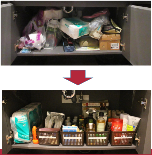 Sử dụng rổ nhỏ để đựng những vật dụng gọn gàng là một trong những cách làm từ lâu được nhiều bà mẹ Nhật sử dụng. Các mẹ Việt Nam có thể tham khảo để biến ngôi nhà của mình trở nên tinh gọn hơn.