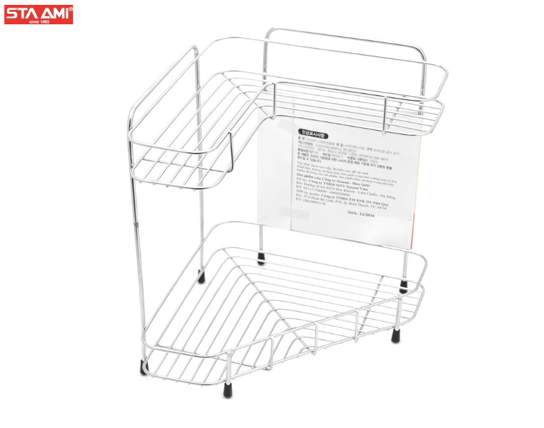 Các mối hàn được gia công tinh tế, cẩn thận, đảm bảo chất lượng sản phẩm cũng như tính thẩm mỹ. Tất cả các góc cạnh đều được bo tròn đảm bảo an toàn trong quá trình sử dụng. Phần chân kệ còn được bọc cao su chống trơn trượt, không làm xước bề mặt nền nhà. Kệ góc 2 tầng Sta Ami sở hữu kiểu dáng hiện đại cùng màu sắc trang nhã, phù hợp với nhiều không gian nhà bếp, phòng tắm khác nhau.
