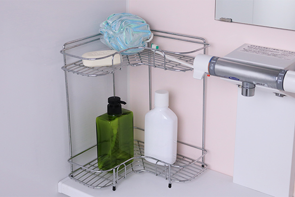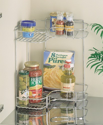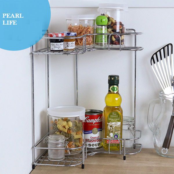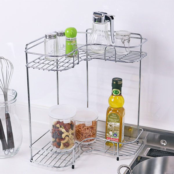 Kệ góc 2 tầng bằng inox dáng chữ L Nhật Bản - tiết kiệm không gian trữ đồ cho nhà đẹp.