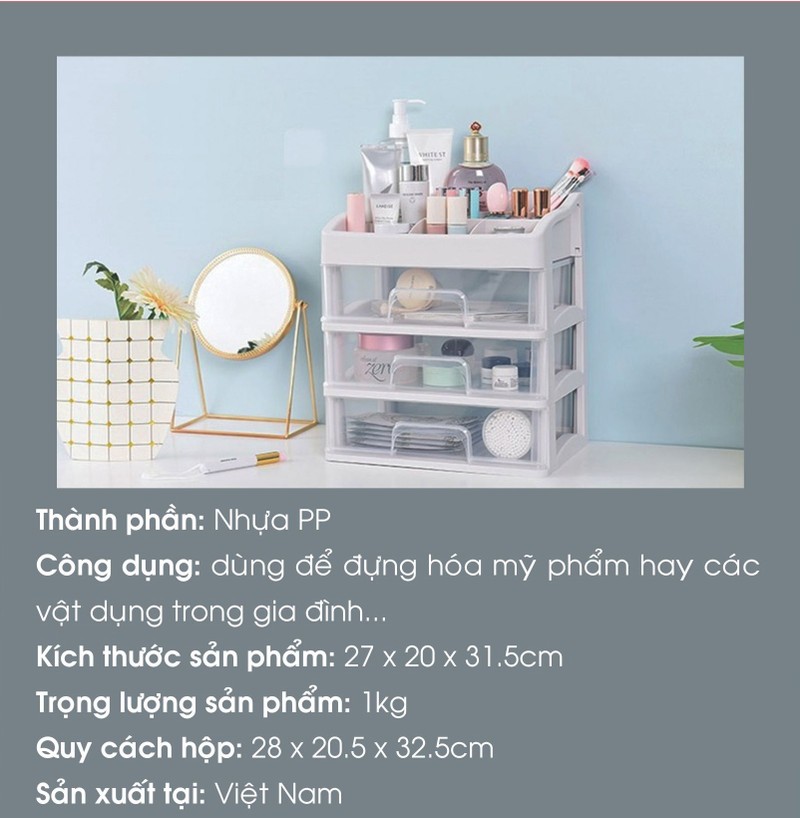 * Giúp các bạn có một không gian bàn trang điểm gọn gàng, xinh đẹp, bảo vệ mỹ phẩm, vật dụng trang điểm luôn sạch sẽ