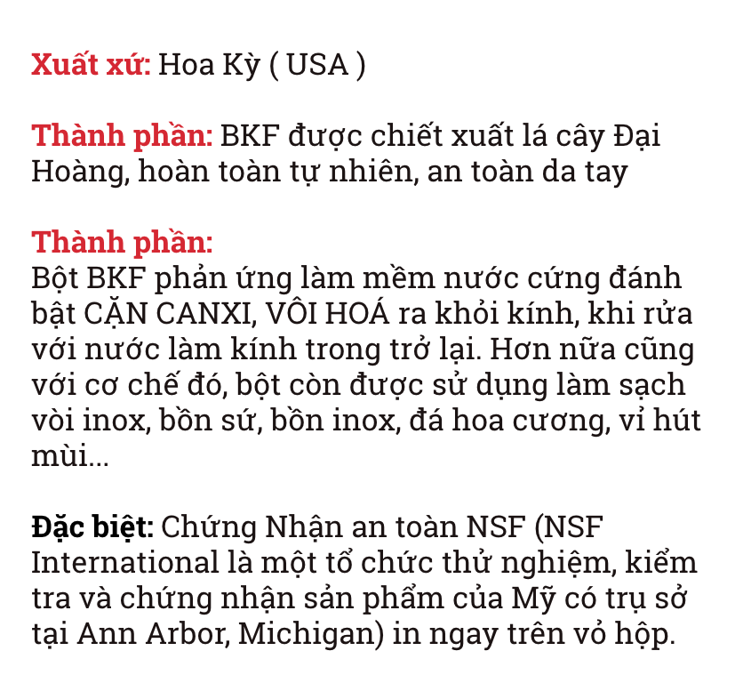Bột tẩy siêu sạch cặn trắng vách kính và đồ inox của mỹ
